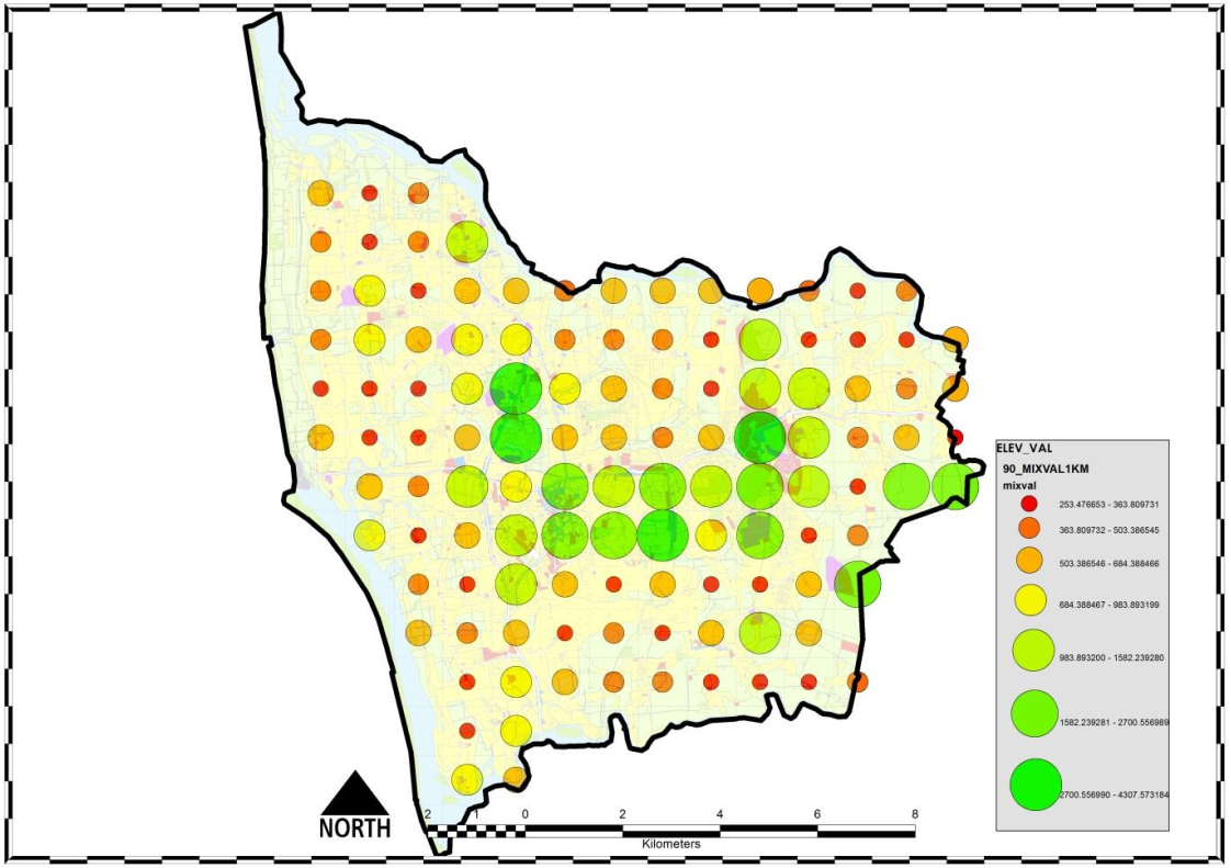The methodology used in this study is based on the existing physical characteristics of the study area, with the exception of cases where there has been a change in land use. It does not take into account factors such as road widths or the location of landmarks and nodes. However, as a spatial methodology, it does provide a broad overview of the potential impact of the mix of land uses in the master plan on development trends. It should be noted that the methodology does not consider the actual floor space available for construction, but rather the total land area available.