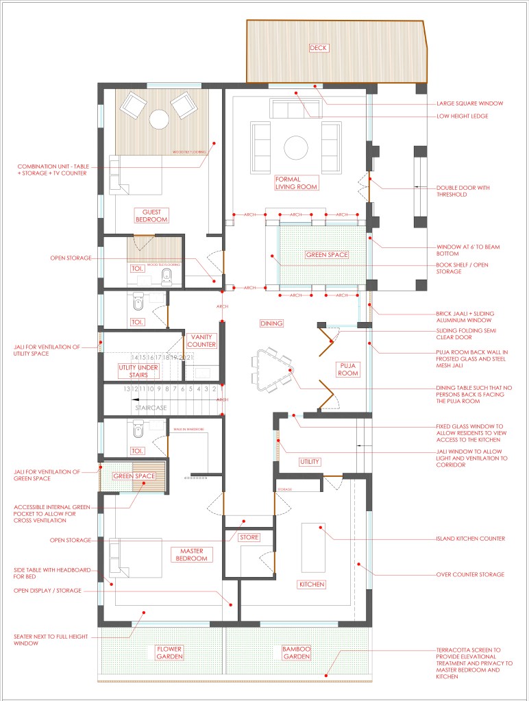 We were tasked with providing a Vastu-compliant design for a 4 Bedroom Residence at Moodbidri, Karnataka. We went through a number of iterations to finalize a layout that would meet the client’s requirements and accommodate their children. Drawing upon the principles of Vastu Shastra, we provided three variations for the client to choose from and provided a set of drawings for their reference.